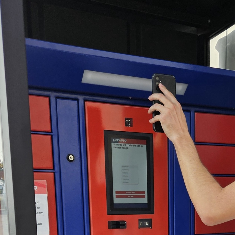 - Ga naar de sleutelkast en scan de QR-code op de sleutelhanger van de wagen.